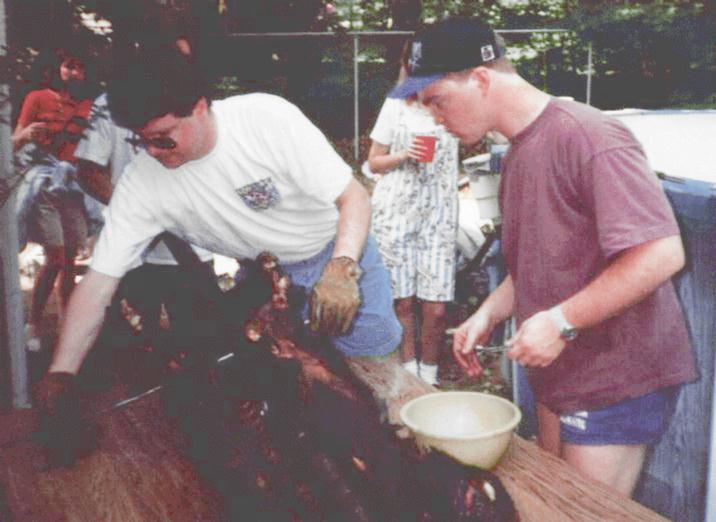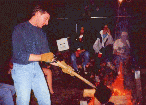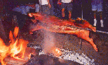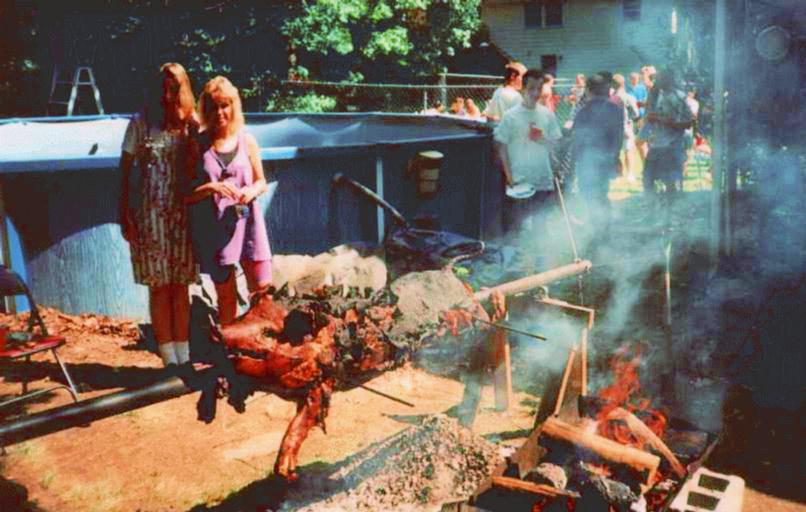 - Bob the Pig is placed over the coals, for what is to become a long,