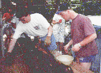 - Bob removed from spit. Carving commences. The carvers, obviously amatures,